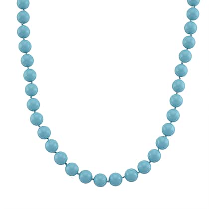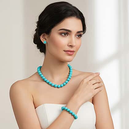Set of 3 - Sleeping Beauty Color Shell Pearl Beads Stretchable Bracelet (Size - 7), Push Back Earring & T-Bar Clasp Necklace (Size - 20)