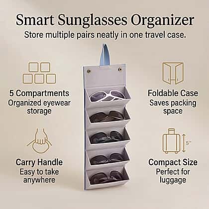 - The portable sunglasses storage organizer features 5 slots, providing ample space to store and organize your sunglasses