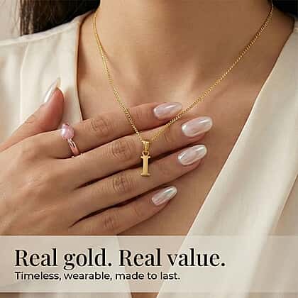 - Plain I initial pendant in 9K yellow gold