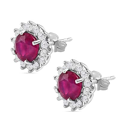 AA African Ruby and Cambodian Zircon Halo Stud Earring