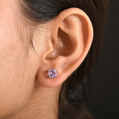 AAA Rose De France Amethyst Solitaire Stud Push Post Earring in Rose Gold Plated Sterling Silver 2.35 Ct.