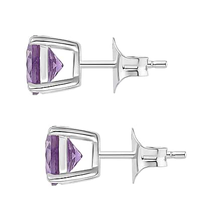 AAA Rose De France Amethyst Solitaire Stud Push Post Earring in Platinum Overlay Sterling Silver 2.35 Ct.
