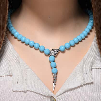 Designer Inspired - Sleeping Beauty Color Shell Pearl & White Cubic Zirconia Adjustable Necklace (Size - 22) 301.50 Ct.