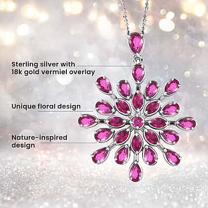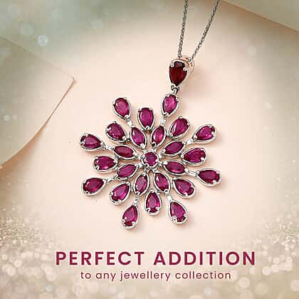 7.36 Ct. African Ruby Floral Pendant with Chain (Size 20) in Platinum Overlay Sterling Silver
