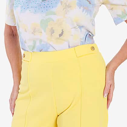 Brighten your wardrobe with these fresh lemon-toned trousers, designed to bring effortless elegance to everyday dressing. Crafted from a comfortable stretch fabric, they offer a flattering fit that moves with you while maintaining a polished silhouette. The cropped length adds a modern touch, perfect for showcasing your favorite heels or flats. Thoughtfully tailored with a smooth waistband and subtle detailing, these trousers transition seamlessly from casual daytime looks to smarter evening outfits. Pair them with a soft printed blouse for a coordinated, uplifting style or a crisp shirt for a more refined finish. Ideal for warmer seasons, they combine comfort, versatility, and a pop of color that instantly elevates any outfit.