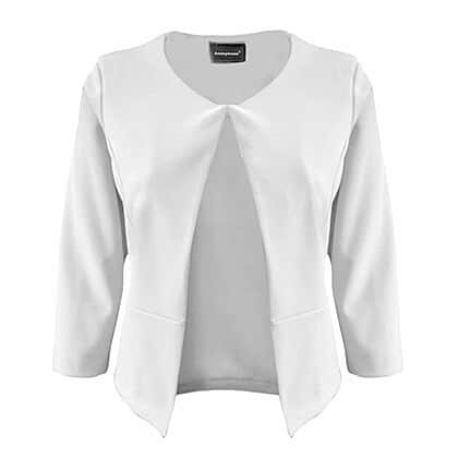 Add a refined layer with this ivory crepe bolero, ideal for weddings, evening dinners or smart daywear. Made from a soft and smooth crepe blend (92% polyester, 8% elastane), it’s shaped to fall perfectly over the shoulders with an open front and delicately ruched neckline. The neutral tone makes it a go-to layering essential across seasons.