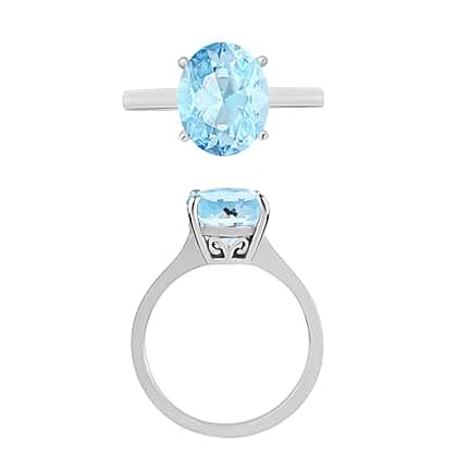 Aquamarine Solitaire Ring in Sterling Silver