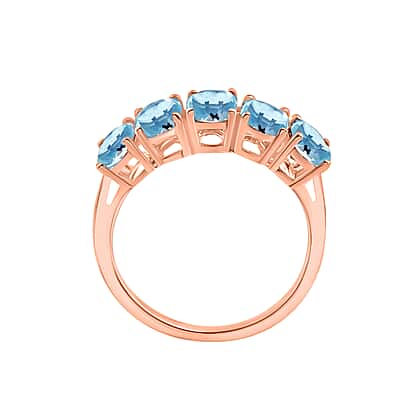 Aquamarine 5 Stone Ring in Vermeil Rose Gold Sterling Silver 2.370 Ct