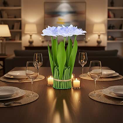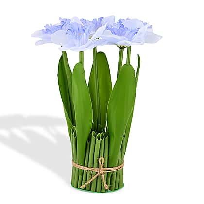 Introduce a calming touch to your interior with this Artificial Flower arrangement in blue and green. The soft blue blooms paired with fresh green stems create a serene colour combination that brightens dining tables, coffee tables or bedside spaces. Designed to maintain its appearance all year round, it offers the beauty of fresh flowers without watering or upkeep. The neatly bundled stems form a structured, upright display that complements both modern and traditional decor. Ideal for everyday styling, special gatherings or thoughtful gifting, this arrangement delivers effortless beauty and long-lasting decorative appeal.