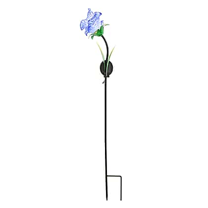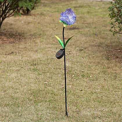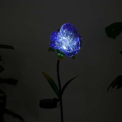 LIVMORE Solar Powered Artificial Flower LED Lights With Metal Garden Stake - Blue