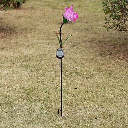 LIVMORE Solar Powered Artificial Flower LED Lights With Metal Garden Stake - Pink