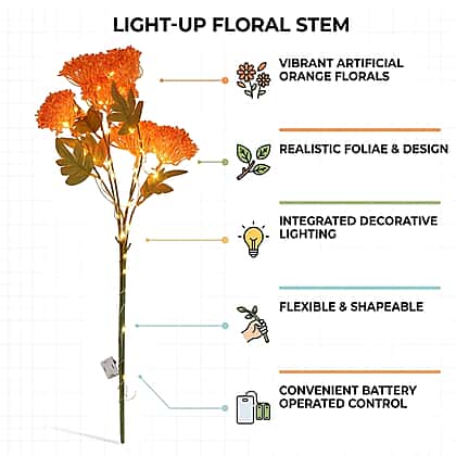 Set of 2 Artificial Three-Headed Faux Flower Branches with LED Lights (60 cm) - Orange