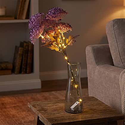 Set of 2 Artificial Three-Headed Faux Flower Branches with LED Lights (60 cm) - Pink
