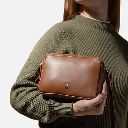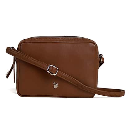 Assots London Avon Tan Soft Nappa Full Grain Real Leather Crossbody Bag