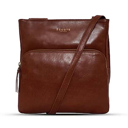 Assots London Canary Brown Vintage Leather Sling Crossbody Bag