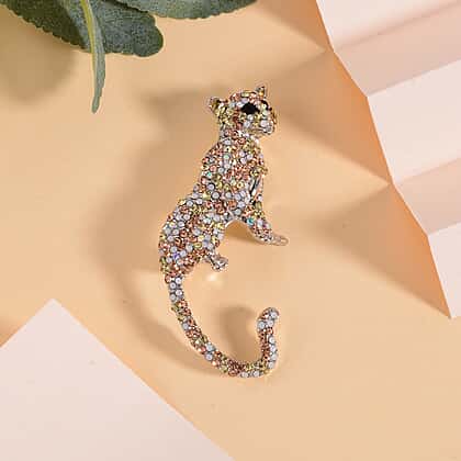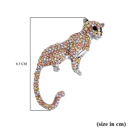 Step into the wild elegance of this Austrian crystal brooch, a remarkable piece that captures the fierce beauty of the panther. Adorned with a dazzling array of multi-coloured crystals, this brooch brings a sense of playfulness and sophistication to any attire. The intricate cluster design showcases 88 exquisite gemstones, each contributing to the overall sparkle and charm. Perfect for those who appreciate creature couture, this brooch is more than just an accessory—it's a statement of bold style and confidence. Whether pinned on a jacket or a scarf, it’s sure to draw attention and admiration.