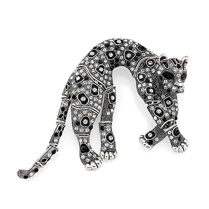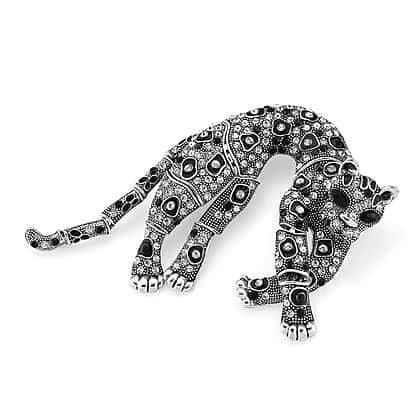 Austrian Multi Colour Crystal & Austrian Black Crystal Leopard Brooch Cum Pendant