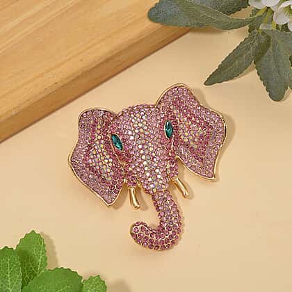 Austrian Multi Color Crystal Elephant Head Brooch in Gold Plated