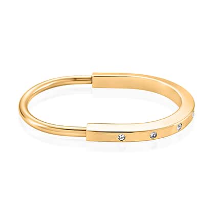 Austrian White Crystal Cuff Bangle Yellow Stainless Steel