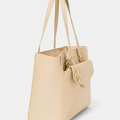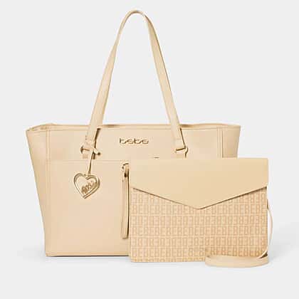 THE DESIGNER LAUNCH - BEBE Signature Tote - Clutch Set with Heart Charm (Size 10x5x14 cm) - Beige