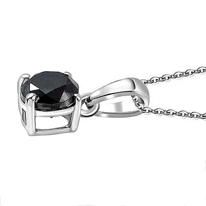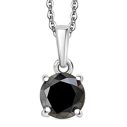 D'Joy Black Diamond Pendant with Chain (Size - 20) in Rhodium Overlay Sterling Silver 1.02 Ct.