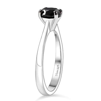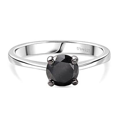 Black Diamond Solitaire Ring in Sterling Silver 1.020 Ct.