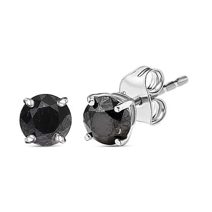 D'Joy Black Diamond Solitaire Stud Push Post Earring in Rhodium Overlay Sterling Silver 1.02 Ct.