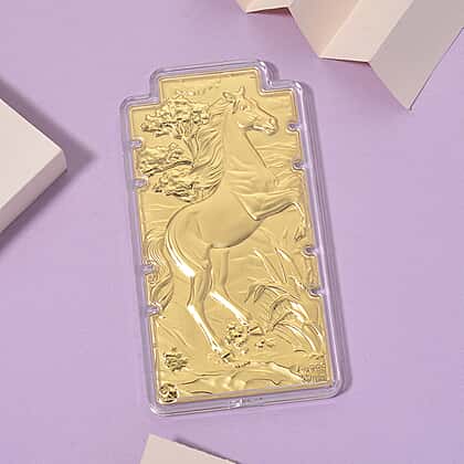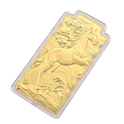 This striking 24K yellow gold foil reveals a powerful horse in mid-rise, surrounded by flowing grass and sculpted landscape details that bring the scene to life. The raised artistry adds beauty and texture, highlighting the movement in the mane, legs and posture. The warm gold tone creates a rich glow suited for collectors, display or gifting. Each contour is formed with precision, giving the foil a bold presence filled with symbolic meaning linked to strength and freedom. The design offers a meaningful keepsake for lovers of expressive artwork.