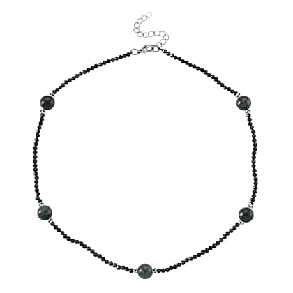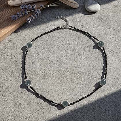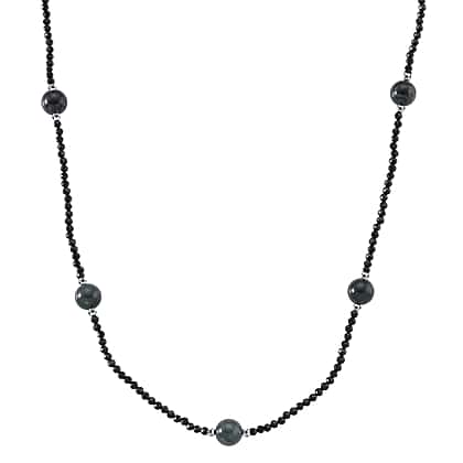 Black Spinel, Natural Jade Beads Necklace Pure White Stainless Steel 60.000 Ct.