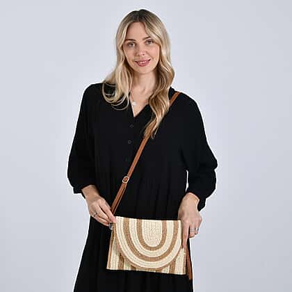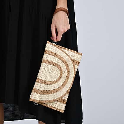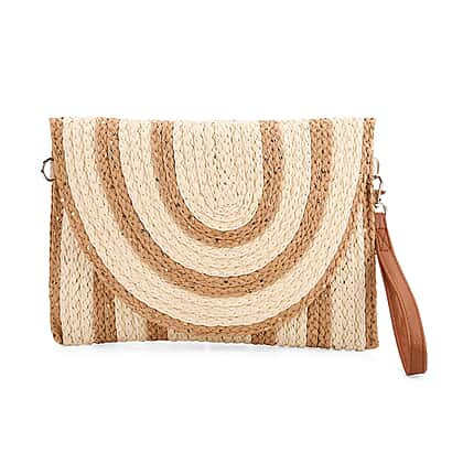 Bohemian Style Stripe Pattern Clutch with Long Adjustable Strap - Beige & Khaki