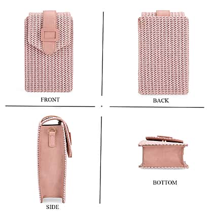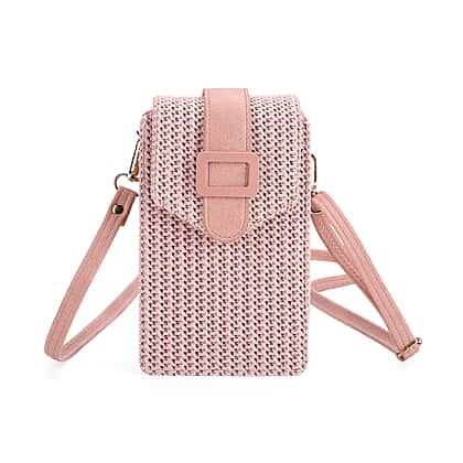 Boho Braided Texture Crossbody Bag with Buckle Flap - Pink