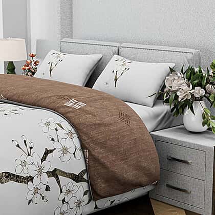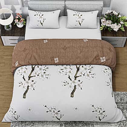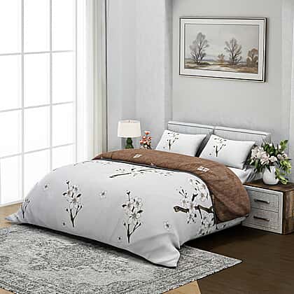 Boutique Bedding Collection 3 Piece Set - Floral Printed Duvet Cover With 2 Pillowcases (Size - Double) - Brown