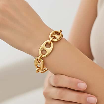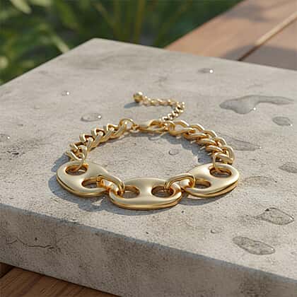 Designer Closeout - Nautical Link Bracelet (Size - 8-2 Inch Ext) in Gold Colour Plating