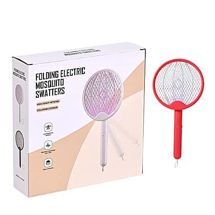 3-in-1 Folding Electric Mosquito Swatter - USB Rechargeable 500mAh, 2-3 Hour Battery (45 X 23 CM) - Red