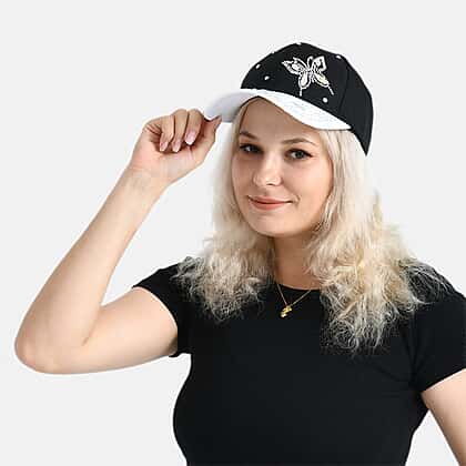 Butterfly Design Baseball Cap (57 Cm) - Black & White