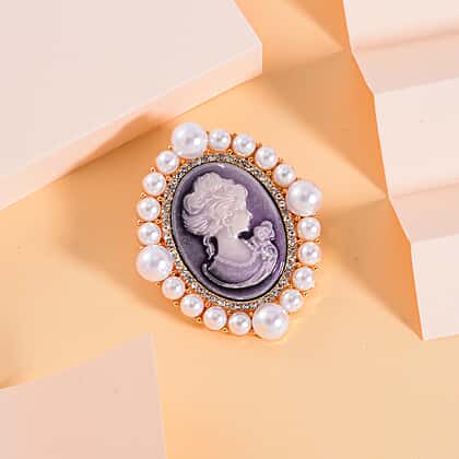 Add a touch of timeless elegance to your outfit with this Vintage Cameo Brooch. Featuring a beautifully detailed resin cameo portrait, the brooch is framed by delicate white pearls and sparkling crystals, all set against a classic gold-tone finish. The combination of the intricate cameo and luxurious accents creates a vintage-inspired piece that complements both formal and casual looks. Perfect for pinning a jacket, scarf, or handbag, it also makes a lovely decorative accessory for home use.