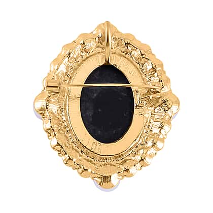 Vintage Cameo Brooch with Pearls and Crystals in Gold Tone