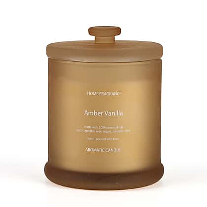 THE HOME LUXURY - Amber Vanilla Scent Glass Jar Soy Candle with Burn Time upto 55 Hours - Light Brown 370 grams