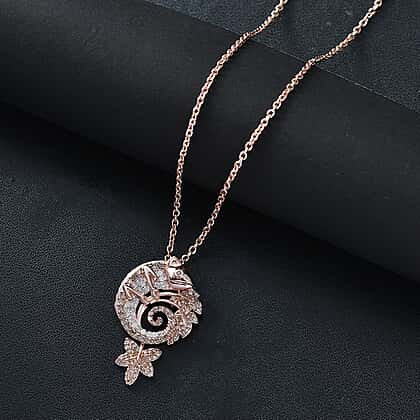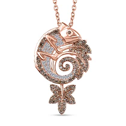 Champagne & White Diamond Chameleon Motif Pendant with Chain (Size 20) in 18K Vermeil Rose Gold Plated Sterling Silver 0.70 Ct.