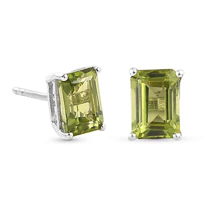 2.04 Ct Peridot Solitaire Earrings in Platinum Plated Sterling Silver