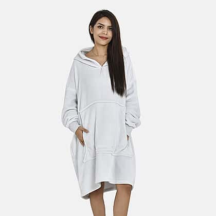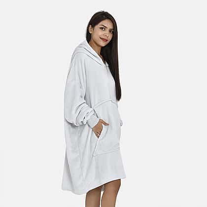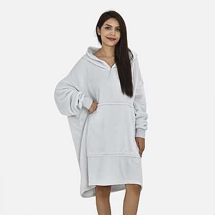Close Out - Flannel Oversized Hoodie with a Giant Pocket - Light Grey - One Size