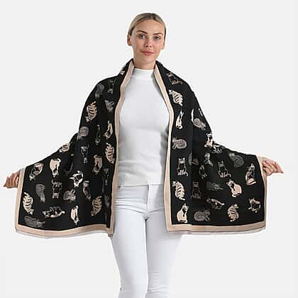 Closeout Deal- Cat Pattern Scarf (180 x 67 cm) - Black & Beige
