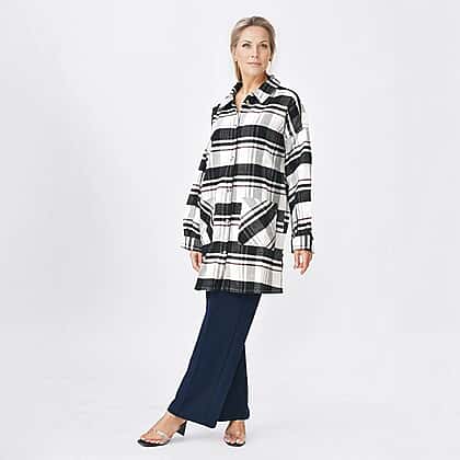 Embrace effortless style with our 100% cotton check shacket in beige and black, a perfect blend of comfort and contemporary fashion. This shacket, featuring a classic check pattern, is made from premium cotton, ensuring durability and softness. Its longer length and double-pocket design add practicality and enhance its fashionable appeal. Ideal for layering, this shacket is a versatile addition to any wardrobe, suitable for various occasions.