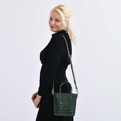 Crocodile Embossed Genuine Leather Crossbody Bag With Adjustable Shoulder Strap - Green