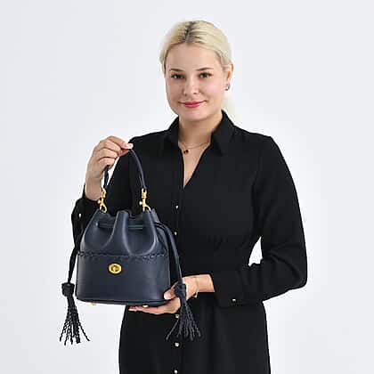 THE AURELLE - Designer Inspired 100% Genuine Leather Crossbody Sinch Bag with Removable Top-Handle, Embedded Fabric Pouch And Gold-Tone Hardware - Dark Navy