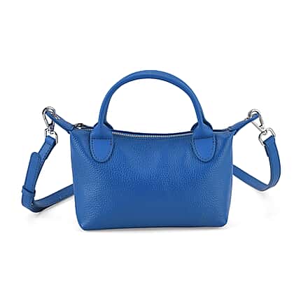 Designer Inspired Genuine Leather Mini Crossbody Bag with Top Handle - Blue