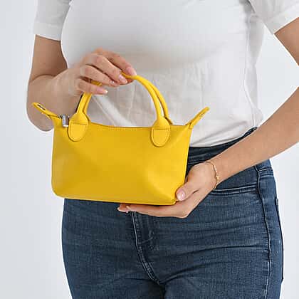 Add a bold pop of colour to your everyday look with this genuine leather mini crossbody bag, designed to combine compact functionality with standout style. The structured silhouette keeps the shape neat and polished, while the vibrant yellow tone brings a fresh and eye-catching appeal. Crafted from genuine leather, the textured finish offers durability along with a refined feel. The top handle and detachable strap provide versatile carrying options, making it easy to switch between handheld and crossbody wear for different occasions.