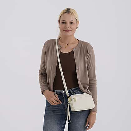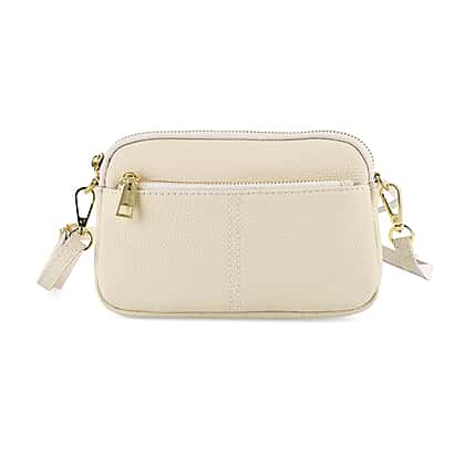 Keep your essentials effortlessly organised with the Off White Crossbody Bag, designed with a clean, minimal aesthetic that complements any outfit. The soft neutral tone offers a versatile look, making it easy to pair with both casual and refined styles. Its compact yet structured design provides just the right amount of space for everyday items, while multiple zip compartments help keep everything neatly arranged. The adjustable strap allows for comfortable crossbody or shoulder wear, and the gold-tone accents add a subtle touch of polish. Perfect for everyday use, travel, and effortlessly coordinated outfits.