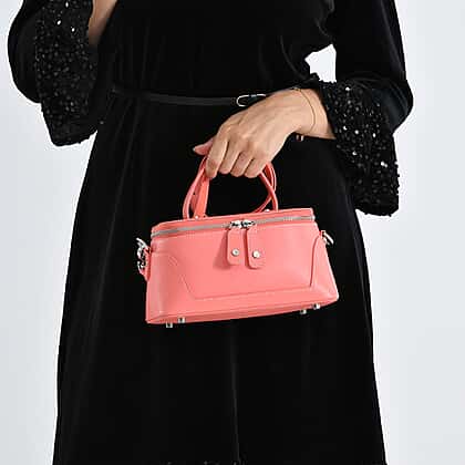 Milan Closeout- Full Grain 100% Genuine Leather Handbag -Coral