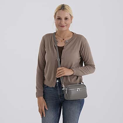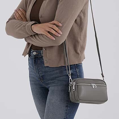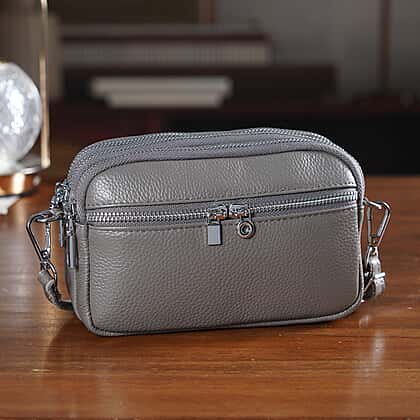 Keep your essentials organised with this genuine leather minimalist shoulder bag, designed for practical everyday use with a clean, compact profile. Crafted from genuine leather, it offers a durable finish with a subtle textured look. The structured rectangular shape provides a neat appearance, while multiple zip compartments allow for easy organisation of your belongings. The adjustable shoulder strap ensures a comfortable fit, making it suitable for daily wear. Finished in classic grey, this bag pairs effortlessly with a variety of outfits for a simple and functional accessory option.